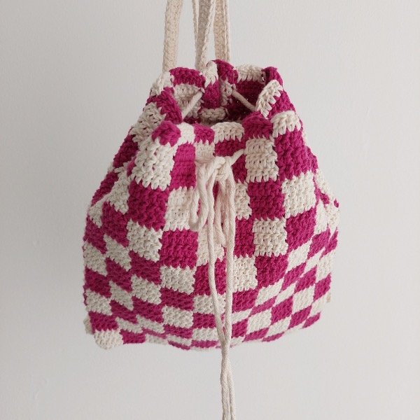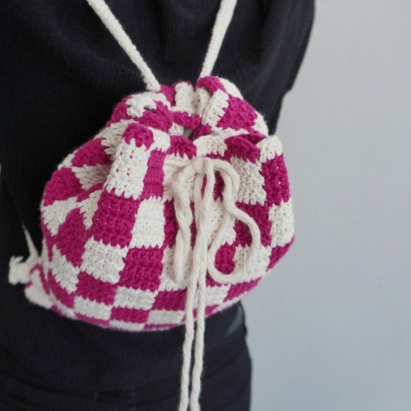 Mochila tejida en hilo de algodón, con brazos regulables.