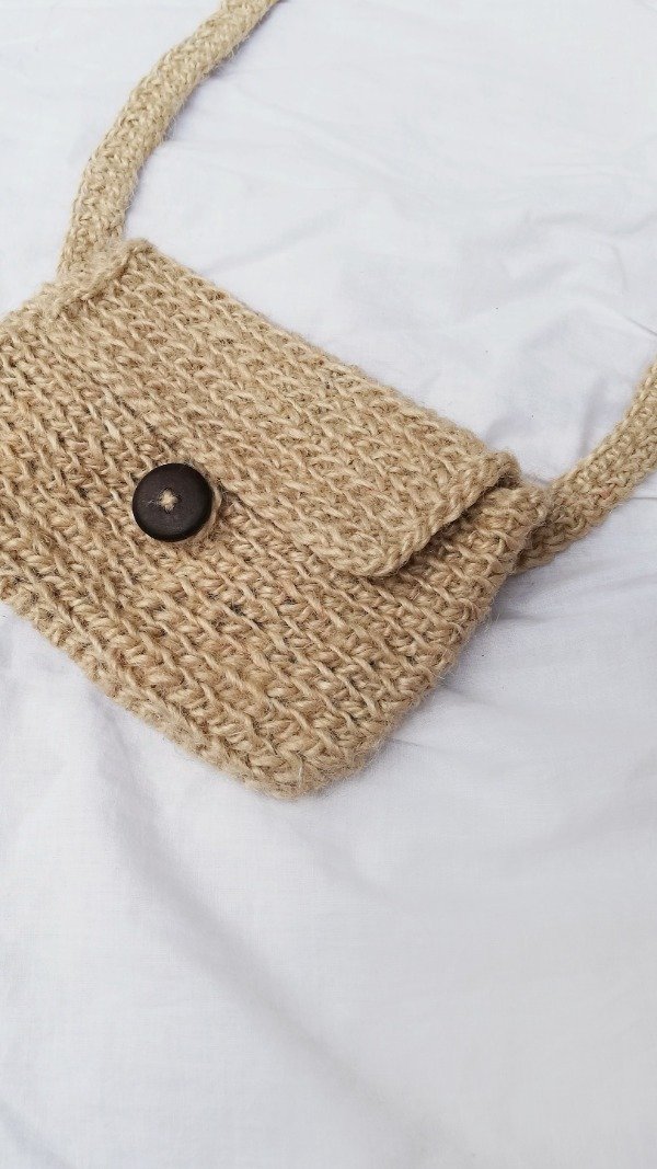 Riñonera tejida en hilo de yute. Correa ajustable.