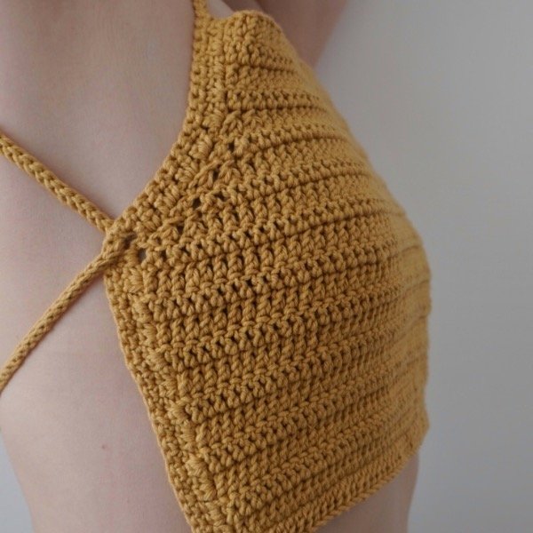 Top tejido en hilo de algodón, con espalda descubierta. Ajuste en espalda y cuello.
